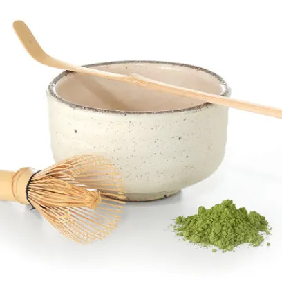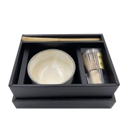 This set includes the essential accessories for preparing matcha: – 1 Chasen (bamboo whisk) – 1 Chashaku (bamboo matcha spoon) – 1 Matcha Chawan (15cl ceramic matcha bowl).