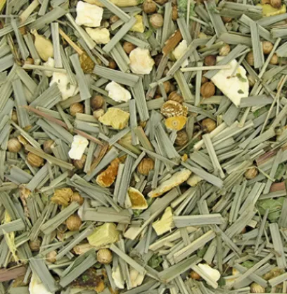 A 100% natural blend of lemongrass and coriander, slightly spiced with licorice and peppermint and scented with orange peel and cardomom seeds.