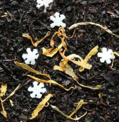 Blend of Chinese black teas flavoured with almond, vanilla, cherry and honey, highlighted with sweetened white stars and red beans and decorated with flowers.