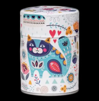 Tin can covered by hand with a long lifespan polymer. Decorated by hand in France.